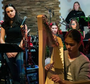 Mit „We Wish You a Merry Christmas“ verabschiedete sich „The Baff“ Bigband. Im Sinne eines zyklischen Charakters des Familienkonzertes war der musikalische Abschluss Greta an der Harfe mit dem Lied „Fröhliche Weihnacht überall“ vorbehalten – ein stimmungsvoller Weihnachtsnachmittag mit frisch gebackenen Waffeln und leckeren Plätzchen.