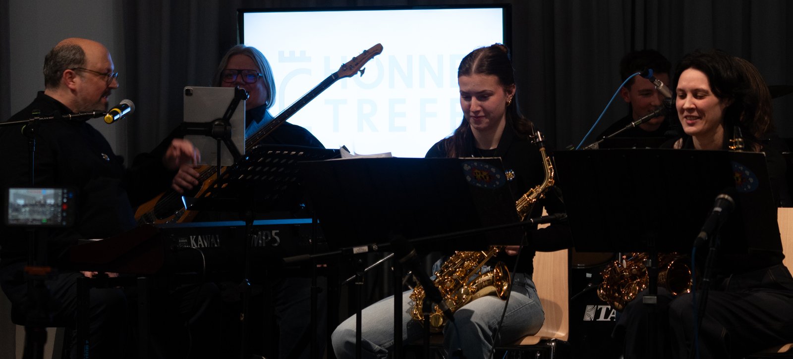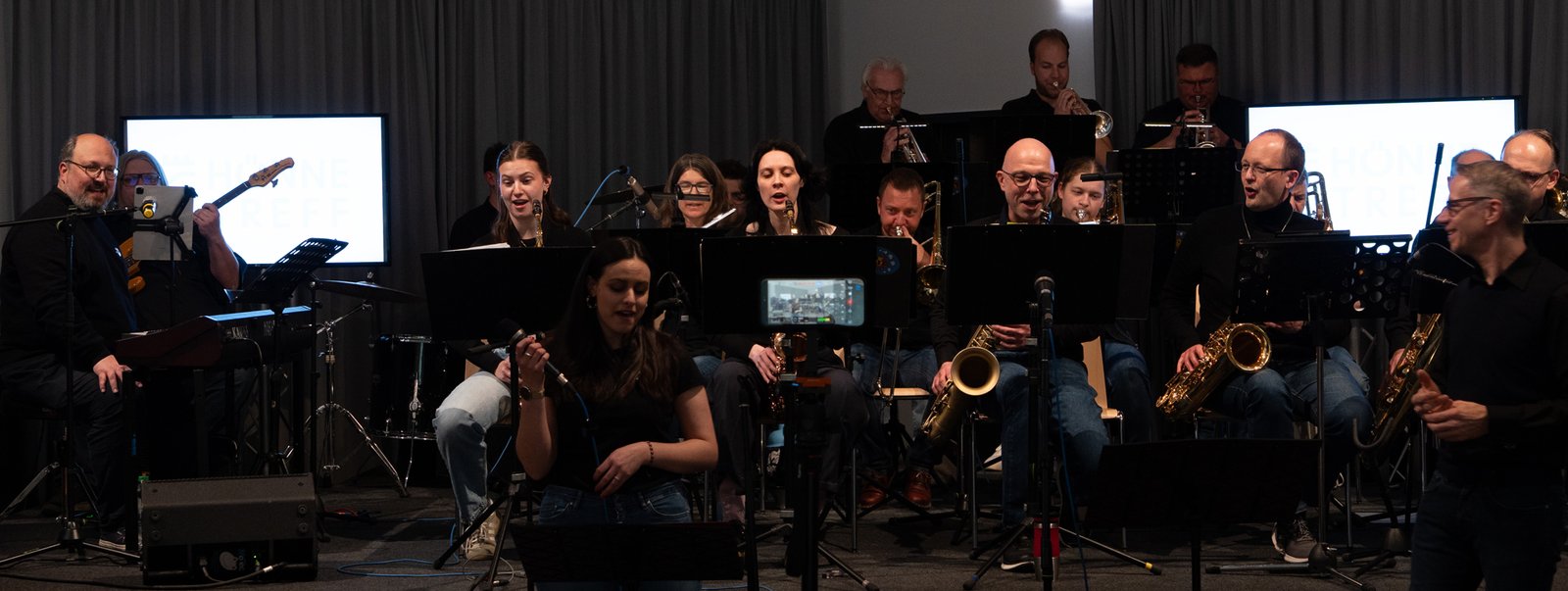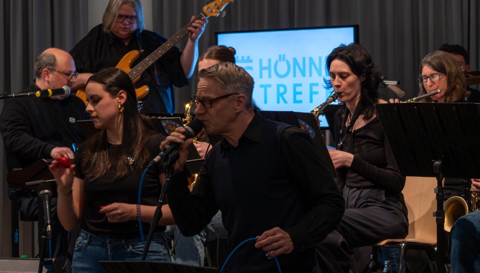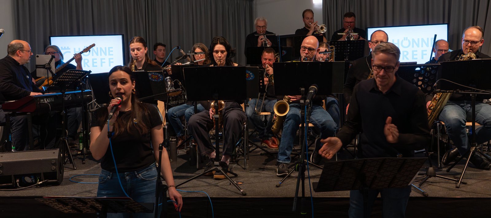 Zur feierlichen Eröffnung des neuen Bürgerhauses „Hönnetreff“ hat die Bigband „The Baff“ am 21. März 2026 ein abwechslungereiches Programm präsentiert. Das Publikum erlebte eine musikalische Reise durch ein ganzes Jahrhundert Musikgeschichte: Insgesamt 16 ausgewählte Hits standen auf der Setlist – allesamt Songs, die internationale Charterfolge feierten und vielfach sogar die Spitzenposition der Top 10 erreich(t)en.